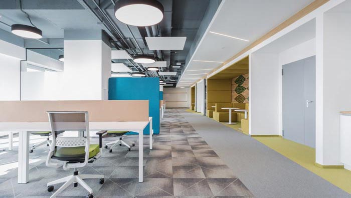 辦公區域的設計:設計師在設計的時候,將其安置在一個大的開放性空間之中,在設計師看來開放式設計是辦公的一個主流設計趨勢,設計師在設計中刪繁就簡,將不必要的東西加以刪除與修改,還員工一個極簡的辦公空間,將空間的束縛歸于無。