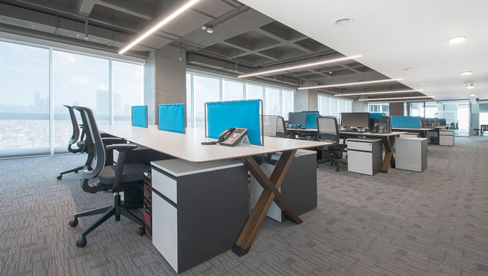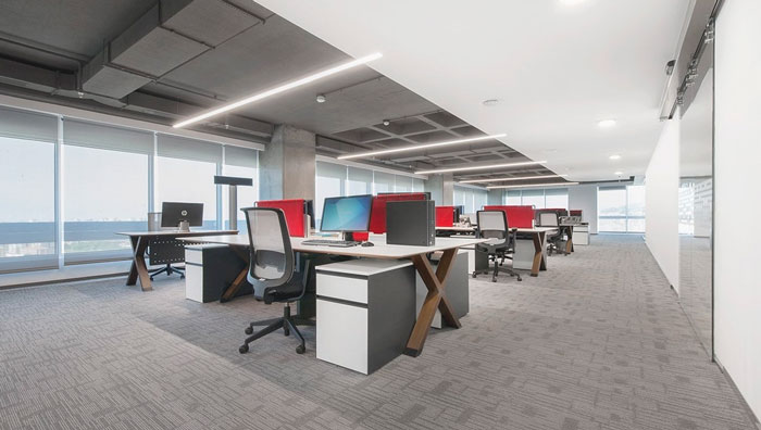 辦公區(qū)域的設(shè)計(jì):設(shè)計(jì)師在打造辦公室的同時,也在強(qiáng)調(diào)室內(nèi)與室外之間的聯(lián)動,在設(shè)計(jì)師看來復(fù)雜的金融對于每一位員工來說,長期都會讓人感到心力交瘁,這也是極簡設(shè)計(jì)受歡迎的原因,因?yàn)楹唵蔚目臻g本身就擁有抵消復(fù)雜的效果,一線江景的引入也是為了給員工營造一個輕松、舒適的辦公空間。