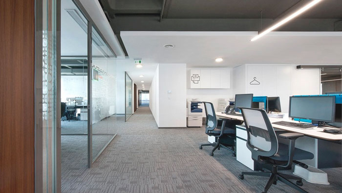 辦公區(qū)域的設(shè)計(jì):整個空間給人的第一感覺就是大氣,這也是設(shè)計(jì)師對金融辦公室的第一印象,在設(shè)計(jì)師眼中金融一定與錢有關(guān),也只有這樣的格局才能彰顯企業(yè)的實(shí)力,如此一來才能取得客戶的信任,同時大氣、簡單的空間,也讓員工的辦事效率如魚得水。