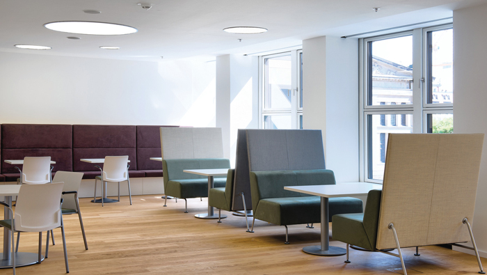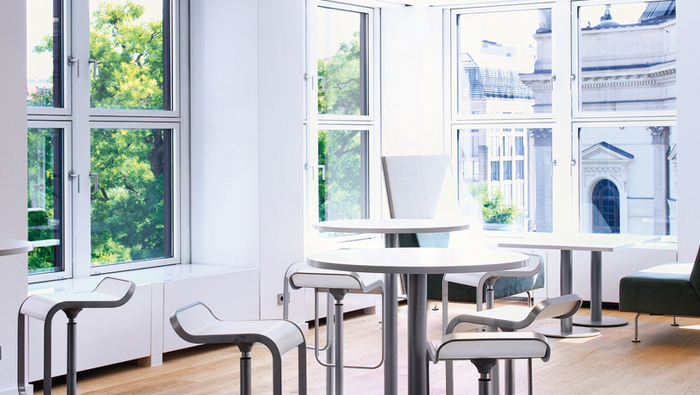 休息區(qū)域的設(shè)計(jì):在這里員工可以坐在這里,什么都不用想,看看窗外的美景,或陶醉、或發(fā)呆、或默默無(wú)語(yǔ)、或與人交談,這也是設(shè)計(jì)師希望看到的,在這里生活的壓力都被陽(yáng)光所驅(qū)散,在這里一切都是如何的透明,讓員工在這里可以休養(yǎng)生息。