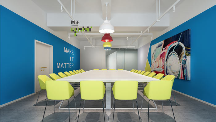 辦公室20樓培訓室設計:這是一個熱情的空間,設計師利用設計讓空間各種元素激蕩起來,目的就是希望讓此熱情可以經久不衰,讓企業不斷培養專業的人才,讓員工在這里不斷成長。