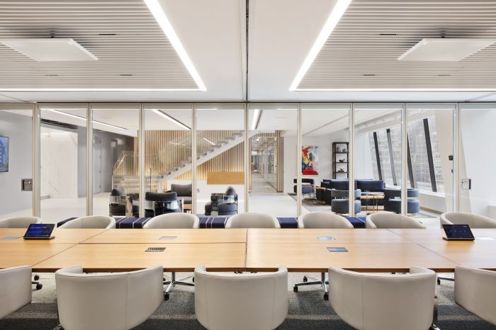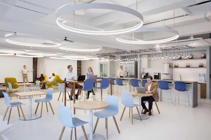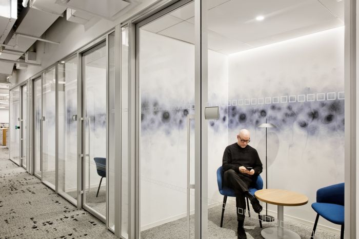 協(xié)作區(qū)域分布在辦公區(qū)和私人辦公室中,以創(chuàng)建通向多個體驗區(qū)域的路線。這包括音樂室、冥想室和休息室等空間,所有空間都是為健康而設(shè)計,旨在改善員工的工作方式。
