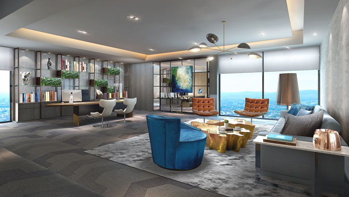董事長辦公室設計:設計師在設計的時候,主要就是希望將室外的景色引入室內,真正做到室內與室外的交融融合,這樣的空間風變得清新、陽光變的明媚,仿佛時時刻刻在旅行,同時使空間具有吸引的屬性,真是讓人羨慕不已。