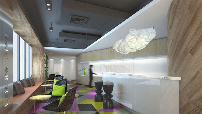 前臺區域的設計:設計師在設計的時候,首先考慮的就是空間的動線,在設計師每次設計中首先考慮的就是動線的完整,在設計師看來動線的完整是保證企業發展的重要組成部分,其他區域依附于它,相輔相成。
