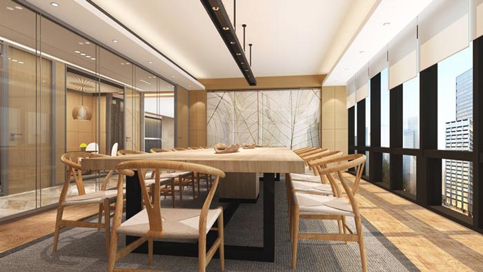 會(huì)議室的設(shè)計(jì):此次給人的第一感覺(jué)好似有茶道的感覺(jué),原因就是設(shè)計(jì)師與客戶都有一個(gè)共同的愛(ài)好,就是茶道,設(shè)計(jì)師在與客戶的交流中,也成為茶友,雙方都了解茶對(duì)人的作用,故此設(shè)計(jì)師以茶為起點(diǎn),讓員工在這里的空間中,除了可以受到茶道的熏陶之外,還可以不斷提升自己的創(chuàng)新能力,因?yàn)椴枳屓遂o心、讓人心境空靈、去偽存真。