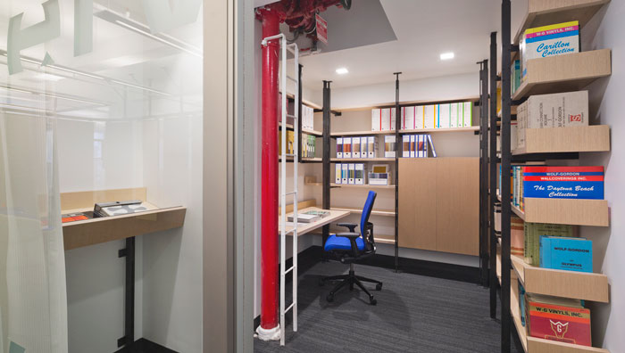 經理辦公室的設計:經理需要負責的是整個企業的正常運作,而資料又是一個企業業務的直接證明,故此設計師在于經理的交流中,了解到經理希望可以將辦公室與資料室融為一體,這樣可以方便經理的日常辦公,同時整個空間顯得更有書香氣息,讓人在這樣的空間中更加安寧。