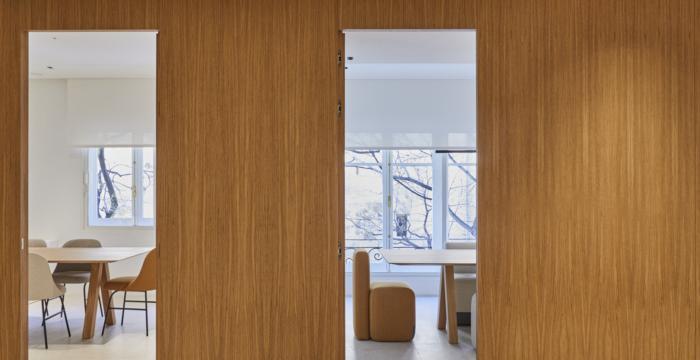 協(xié)作工作間被設(shè)想為中立的空間,為那些決定在辦公室工作的客戶提供各種活動,如視頻會議、簡短會議,甚至是合作活動。各成員非但沒有制造阻礙意見交流的障礙,反而可以共用工作站,在需要更大隱私的時候可以選擇利用其他領(lǐng)域。