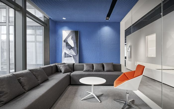 空間矩陣?yán)霉δ荏w塊的重新組合,讓空間成為現(xiàn)在和未來的鏈接,給辦公室一個(gè)空間點(diǎn)和生機(jī)點(diǎn)。設(shè)計(jì)師利用品牌自身的形式、材料或結(jié)構(gòu)體,形成獨(dú)具特色的“品牌符號”。并且通過具有縱深感的軸線和體塊的組合關(guān)系,暗示品牌獨(dú)有的場地特征。局部運(yùn)用顏色修飾,保證了整個(gè)空間的有序、互補(bǔ)關(guān)系。
