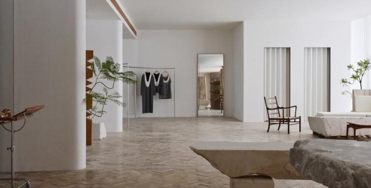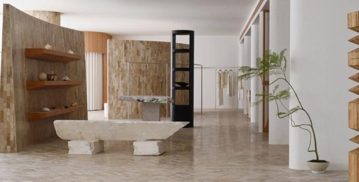 在材料上,鑲嵌在地面的來自海洋的貝類、直接從石場拉來的石方、北美松木清新的香氣,呼應著這個塑造“自然的形狀”的服裝品牌的質地。這些設置有利于有效率的工作和放松下來兩種狀態并存。我們希望它既能為工作提供便利性,但當你放松下來,這個辦公室又是一個令人感到舒服的地方。