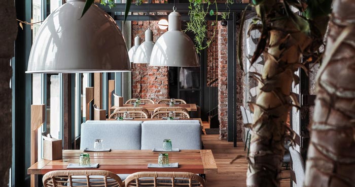 本案為特色餐館設計項目,客戶的需求是打造,能夠逃離城市喧囂的就餐環境,設計師首先簡化空間的動線,其次是多樣化,讓客人可以找到他們喜歡的地方。
