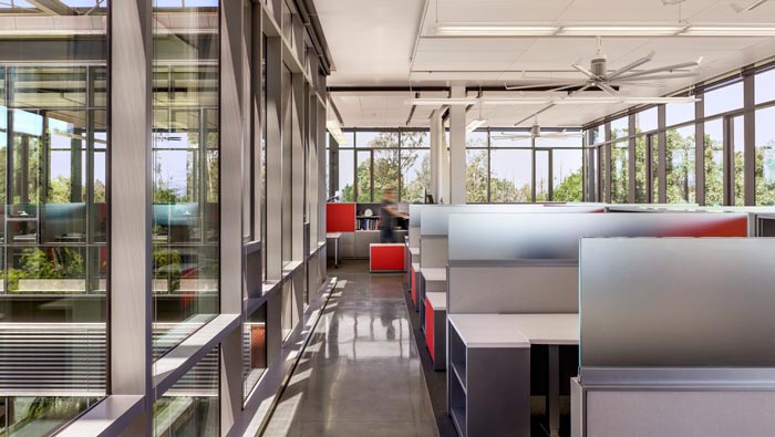 廠區的設計:此處的風景是一位室外設計師所設計的,在設計中兩位設計師做了全面的溝通,這樣做的目的就是希望室內、室外可以融為一體,室外設計師也受到業主的感染,在設計中加入了各種節能設計,讓整個空間宛如一體。