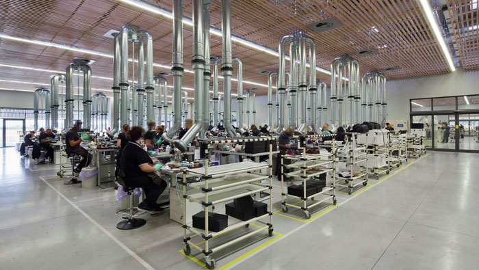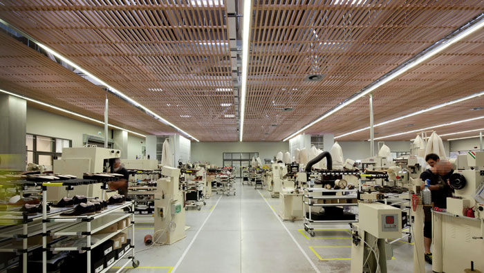 工廠廠房車(chē)間裝修設(shè)計(jì):這里是鞋子的重要組裝區(qū),這里主要由人工完成,高端的鞋子在這里逐漸成型,這里注重的是舒適度,在定制化回歸的今天,高端的鞋子更受人追捧。
