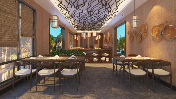 溫泉度假酒店餐廳裝修設計案例效果圖