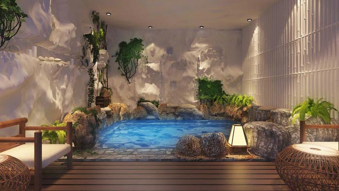 溫泉度假酒店室內溫泉裝修設計案例效果圖