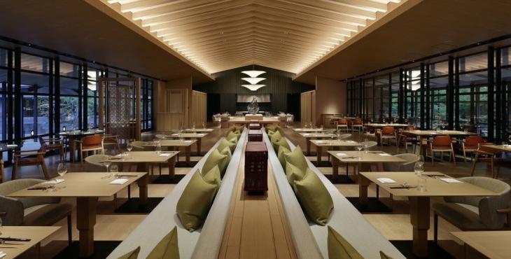 Roku Kyoto度假酒店。當?shù)厣瞥龉そ常毡颈容^有聲譽的寺廟大多集聚于此,匠人精神和宗教元素賦予了酒店獨特的魅力。林立的纖細柱網結構,其設計靈感來自于風中搖曳的竹子,生動場景的建立,使住客與自然產生親密的聯(lián)系。