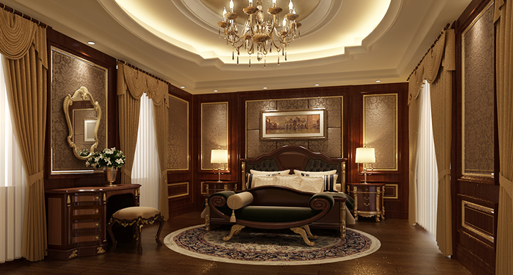 設(shè)計(jì)理念:本案的設(shè)計(jì)似乎每一處都能給人豪華大氣的感覺(jué),深色咖啡色的搭配,每一處都散發(fā)著刺激人心靈的大氣豪情。尤其是弧線(xiàn)形輪廓與新古典的結(jié)合,重點(diǎn)部位咖啡色的完美搭配,呈現(xiàn)出來(lái)的大氣豪華,讓人感受心靈的升華。