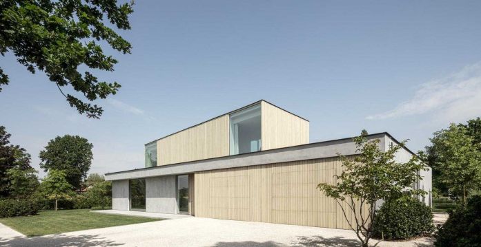底層的支撐底座是由一種混凝土外觀的平灰泥突出的。在上面的較小體積是在木箱和包層上實現(xiàn)的。然而,這兩卷在物化上的差異似乎不難對比。畢竟,灰泥是以淺灰色進行的,它的底土和一種特殊的清掃技術(shù)也使灰泥具有溫暖的色調(diào)。這樣做,某些等級出現(xiàn),使整體看起來不那么平坦,更自然。這與大窗戶結(jié)合在一起,產(chǎn)生了美麗的和諧。