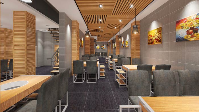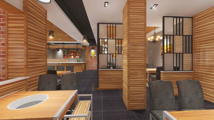 魚(yú)火鍋店一樓餐區(qū)設(shè)計(jì):四人桌、六人桌是一樓餐區(qū)的主要組成部分,這里的設(shè)計(jì)目標(biāo)十分明確,就是為每一桌的客戶,在滿足需求的同時(shí),為他們營(yíng)造一個(gè)優(yōu)質(zhì)的就餐環(huán)境。