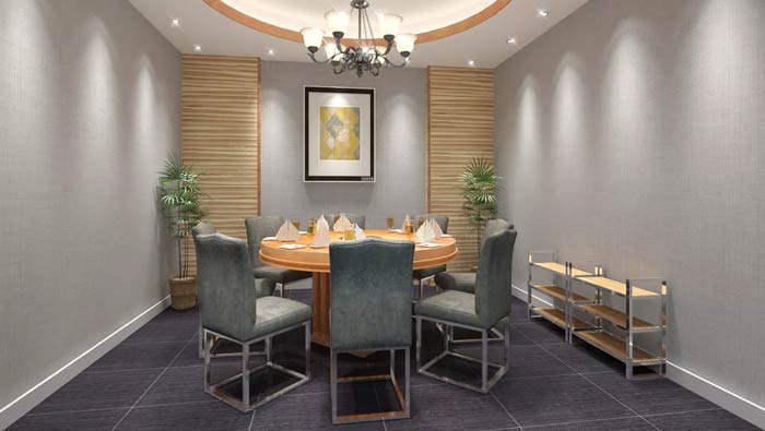 魚(yú)火鍋店八人包廂設(shè)計(jì):包廂在設(shè)計(jì)的時(shí)候,設(shè)計(jì)師首先要保證的就是空間的隔音,設(shè)計(jì)師認(rèn)為一個(gè)安靜、舒適的包廂就餐環(huán)境,會(huì)深受客戶的喜歡。