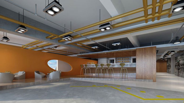 形象墻的設計,設計師采用了橘黃色,這樣會更加醒目,讓形象墻的功能作用可以得到最大化開發和利用。