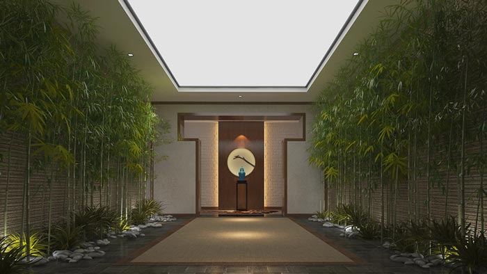 冥想?yún)^(qū)域的設(shè)計(jì):此處是設(shè)計(jì)師的意外之作,因?yàn)樵O(shè)計(jì)師在設(shè)計(jì)的時(shí)候去過(guò)一次竹園,在哪里設(shè)計(jì)師感受到了自然的魅力,同時(shí)也感受到自己在哪里得到了某種升華,其中的感覺(jué)只可意會(huì)不可言傳,故此設(shè)計(jì)師希望將其安置在空間之中,讓來(lái)往的客戶在這里尋找那縹緲無(wú)蹤的感覺(jué)。