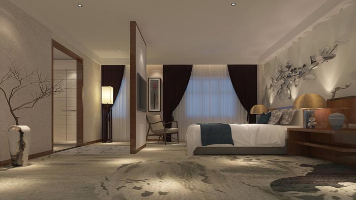 套房的設(shè)計(jì):在這里中式裝飾更加明顯,也漸漸多了起來(lái),就是希望讓人遠(yuǎn)離外面的世界,雖然我們無(wú)法逃離現(xiàn)在的生活,但是設(shè)計(jì)師希望讓我們得到暫時(shí)的脫離,目的就是希望在這里讓客戶進(jìn)行的思考,讓心情得到一次釋放,空間的跨越讓我們得到的是對(duì)人生的思考。