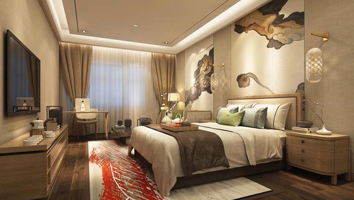 客房的設計:每一間客房都是一件藝術品,設計師就是希望如此打造酒店的與眾不同,讓客戶每一次住進酒店之后,都有一次不同的感受與收獲,在這里如詩如畫的空間,讓我們與藝術更加接近,讓我們去體會那難得的清靜,讓我們在這里去傾聽自己的心、舒緩心靈。