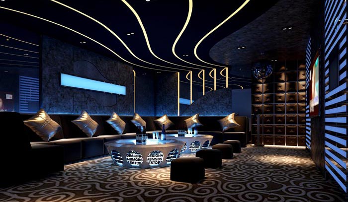 強調(diào)視覺中心等燈光具有裝飾KTV建筑室內(nèi)空間的作用,創(chuàng)造環(huán)境空間的形與色,使之融為一體,借助各種光效應(yīng)而產(chǎn)生美的韻律!