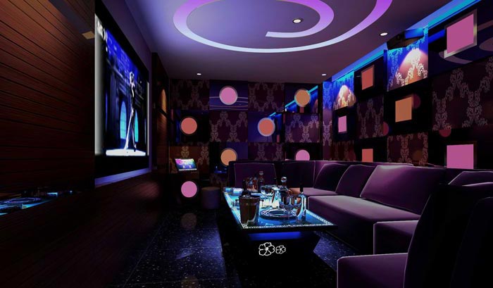 設計理念:番禺富華國際KTV裝修設計,經考察和分析,提取了原方案的主要元素和色采,盡可能地保留了夜場的氣氛,因場所面積大,選用大量的流線做引導設計,空間上,依墻而隔,加入了部分隔間材料。