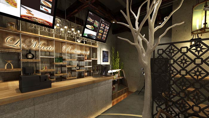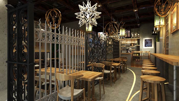 特色快餐店餐區裝修設計:餐區氛圍吧臺區【單人區】、雙人區、四人區三種模式,這是根據商業廣場客戶的屬性所決定的,這樣可以最大化的實現分流,以此增加餐廳的待客。