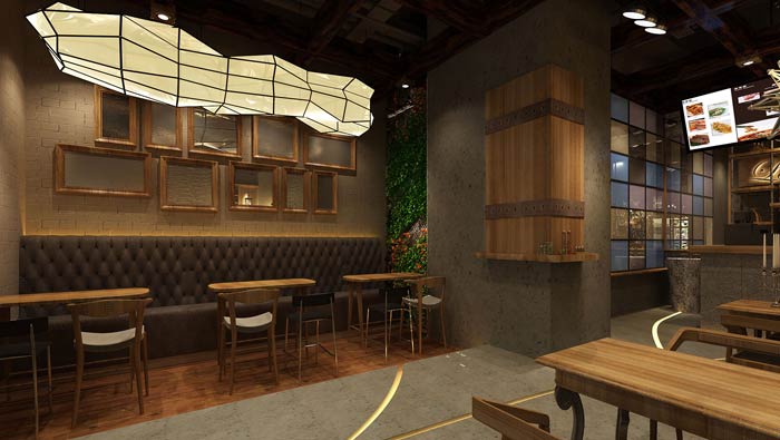 本次為特色快餐店裝修設計方案,快餐店位于商業廣場內,快餐店設計面積在200平左右,設計師結合此地段人們購買方式的特征,決定打造一個特色快餐廳設計方案,一來這樣的設計符合周圍客戶的定位,二來快餐廳也符合周圍客戶的習慣,故此特色設計+快餐廳兩者一拍即合。
