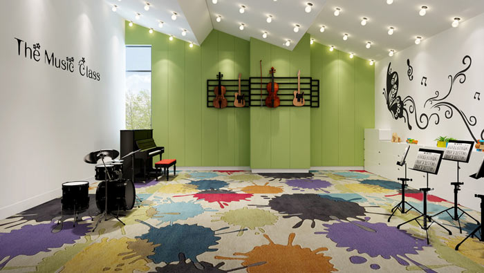 學前教育學校音樂教室設計:音樂可以提高人的審美能力,凈化人們的心靈,樹立崇高的理想,學校希望通過音樂來抒發(fā)文化的情感,使文化在音樂中進入孩子們的心田。