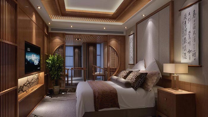 客房的設(shè)計(jì):在這里中式的設(shè)計(jì)讓人感覺是那么的親切,在這里設(shè)計(jì)師還原了古代的室內(nèi)格局,并在其中加入了現(xiàn)代的元素,這樣的設(shè)計(jì)讓顧客感受不到絲毫的不適,文化的傳承在這里蔓延,讓顧客在文化的熏陶下忘卻暫時(shí)的煩惱。