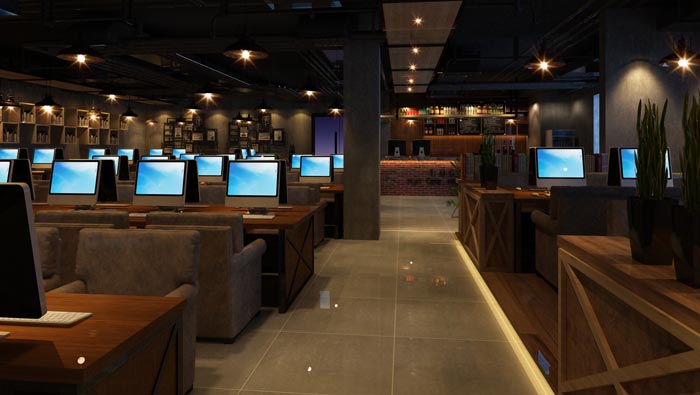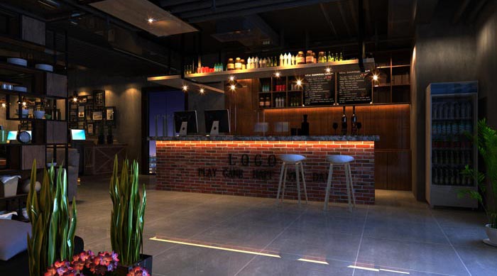 設計師在設計網咖的時候,確定其其私密性,座位之間不宜太近,燈光也不宜太亮,而休息區則需要很輕松寬敞的氛圍,配以柔和的色調,綠色植物的搭配等,讓人得到充分的放松。