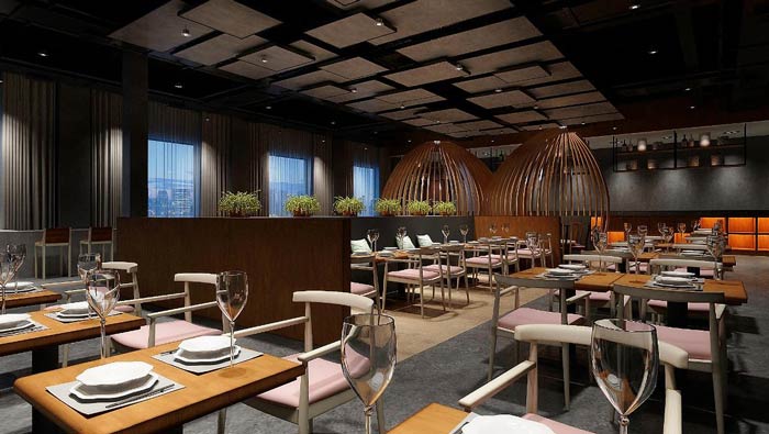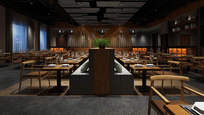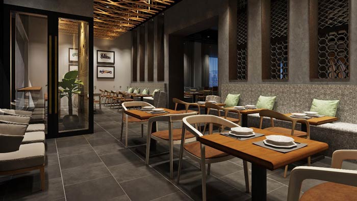 本次美食小吃店裝修設計方案,美食小吃店設計面積350平方米,設計師在軟裝搭配中,以新中式家具為主,讓空間充滿了雅趣,雖為美食小吃店,但一樣可以高端素雅,空間充滿了詩意雅致的情懷。