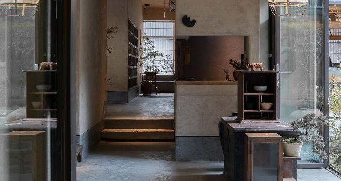 元古雲(yún)境是中國(guó)西南地區(qū)的首店,也是成都的第一家店。餐廳位于成都太古里的二樓和三樓,通過樓梯進(jìn)行連接。入口設(shè)計(jì)采用老石板和老木板,給人一種沉穩(wěn)且神秘的感覺。三樓平臺(tái)上有一個(gè)精致的小院,與自然更加親近。營(yíng)業(yè)區(qū)分為廚房、包間、洗手間、吧臺(tái)、院子和散臺(tái)區(qū)。吧臺(tái)、院子和散臺(tái)區(qū)互為景觀,相互依存。洗手間和包間位于廚房的角落,可以控制成本,減少干擾。散臺(tái)區(qū)相對(duì)獨(dú)立,安靜,讓人更加愜意。設(shè)計(jì)的靈感來(lái)自于元古精神,即簡(jiǎn)單、自然、溫暖。在解決動(dòng)線問題、空間利用率、節(jié)能和光線等問題后,自然形成了這種設(shè)計(jì)。