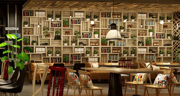 韓式主題餐廳裝飾墻設(shè)計(jì):裝飾墻上擺放著各式各樣的裝飾品,其一是為了裝飾空間,其二是為了讓空間更加美麗,綠色的綠植擺放在裝飾墻上,讓空間變的美麗、自然。
