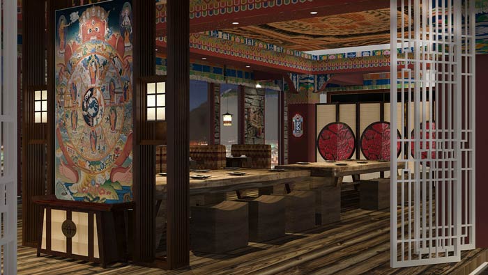 本次為藏式主題餐廳裝修設計方案,業主十分向往藏式風格獨特且優美的,設計形式與設計風格,業主希望空間可以與雪域高原,壯麗的自然景觀一樣渾然一體,給人以古樸、神奇、粗獷之美感,以此形成餐廳獨有且鮮明的設計特點,空間設計風格形式多樣,富于變化,內容豐富。