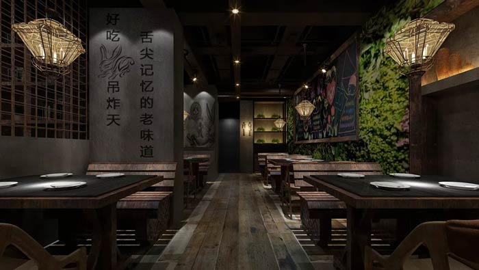 特色主題餐廳墻體設計:舌尖記憶的老味道,好吃吊炸天,兩種不同的說話方式,在這里得到很好的融合,既有回憶的美好,又有現在的美好,一切的一切完美融合。