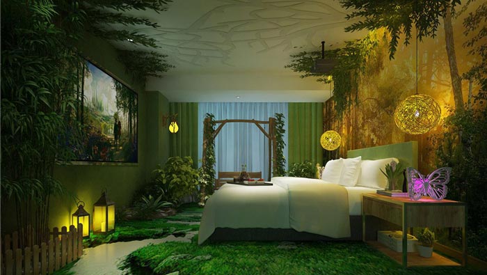 情侶主題酒店綠植成蔭客房裝修設計案例效果圖