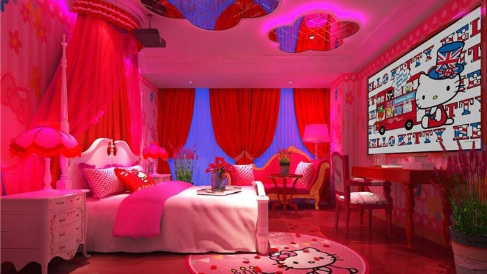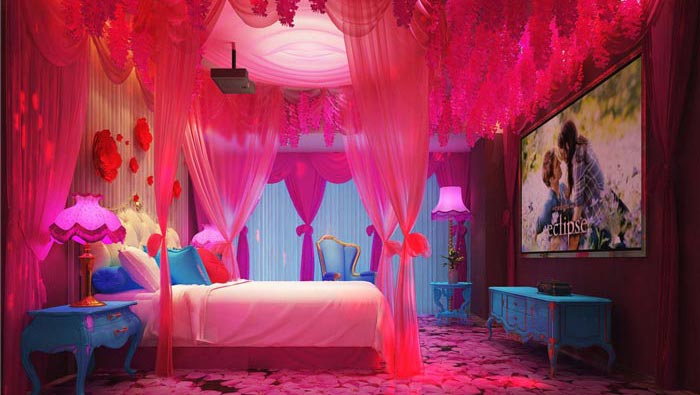 情侶主題酒店卡通客房裝修設計案例效果圖