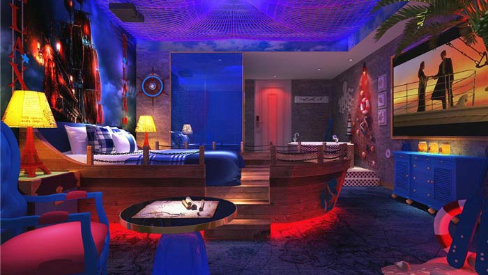 情侶主題酒店海盜船客房裝修設計案例效果圖