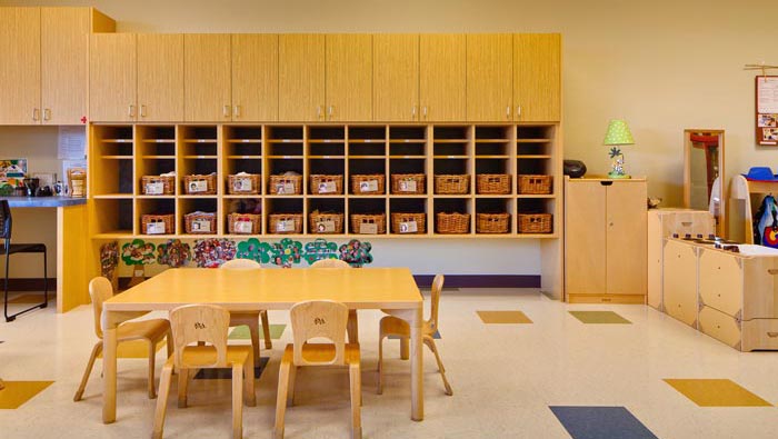 休息區域的設計:此處與教室的格局類似,但功能卻不同,此處是孩子的個人時間,在設計師看來每一個孩子都需要有自己的時間,讓孩子們自己去安排,我們不能扼殺孩子的天性,因為有時候我們做的一切不一定對孩子有好處,所有需要這樣一個空間,讓孩子獨立自主的完成某項事物,只有如此才能讓孩子不斷成長。