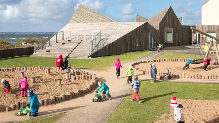 教室采光的設(shè)計(jì):室內(nèi)與室外海洋景觀緊密聯(lián)系,全年都可以提供理想的日光照明條件,讓孩子們?cè)谶@里無憂無慮的成長,溫暖的陽光見證了孩子的成長,也照開了孩子的心,讓孩子們從小學(xué)會(huì)積極向上的生活,為孩子的茁壯成長打下堅(jiān)實(shí)的基礎(chǔ)。